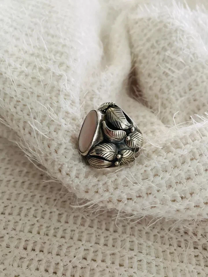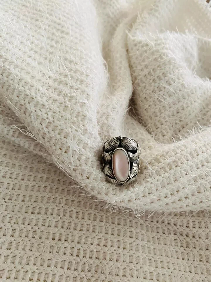 Incredibly beautiful Gary Johnson signed size 7.5 pink shell ring with gorgeous silverwork!